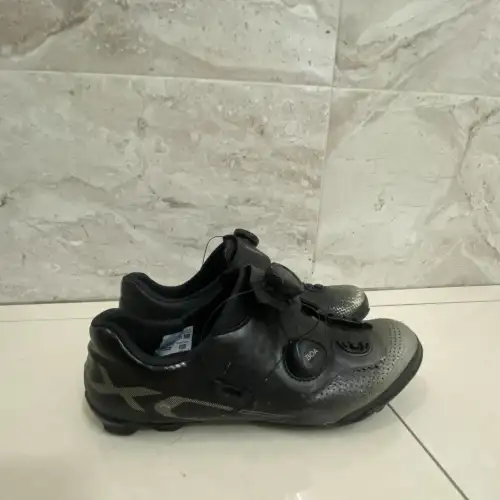 穿了近兩年的 Shimono XC7 卡鞋,退役了! 2023.04.02~2525.02.26 騎乘里程 27,124.87km 左腳底部腳跟處磨平,習慣路上遇到灑水(路面積水)時,下車提車步行,積水總從底部滲透到襪子內部!